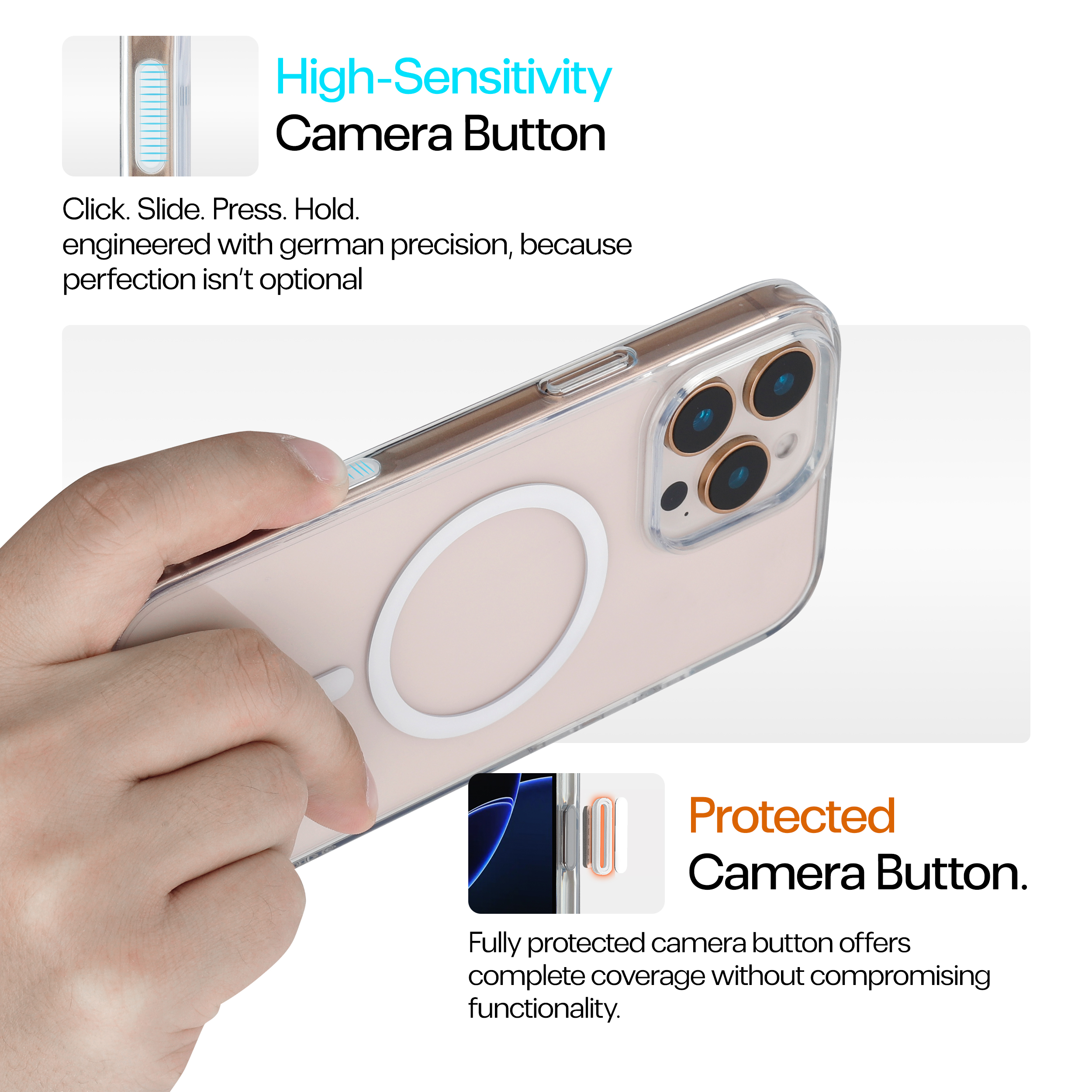 - [Stoss-Guard™] 6.6 ft drop Protection With Advanced Shock-Dispersing Technology, Reinforced Air Pockets In Each Corner That Compresses Upon Impact.